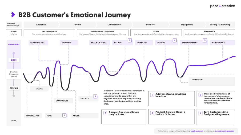 The graphic below outlines the stages of a customer’s journey when interacting with your products and services. This is a useful tool to best anticipate a positive customer experience.